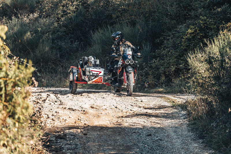 Le side-car était également équipé des sacoches de la ligne Canyon de GIVI, une gamme hautement performante et résistante à l’eau, pensée pour affronter aussi bien des voyages off-road exigeants que de longs trajets en compagnie, garantissant fiabilité et praticité en toutes circonstances.