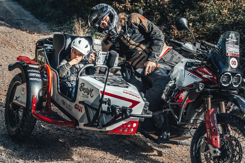 Pour réaliser ce souhait, Davide a participé à la Transitalia Marathon à bord du premier Ducati DesertX Rally Sidecar au monde, conçu et construit par VFR Tech et Rustom avec la collaboration technique de GIVI. Ce véhicule unique a été étudié pour lui offrir sécurité, stabilité et la possibilité de vivre l’aventure de manière complète et immersive.